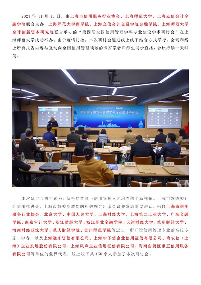 第四屆全國信用管理學(xué)科專業(yè)建設(shè)學(xué)術(shù)研討會在上海成功舉辦